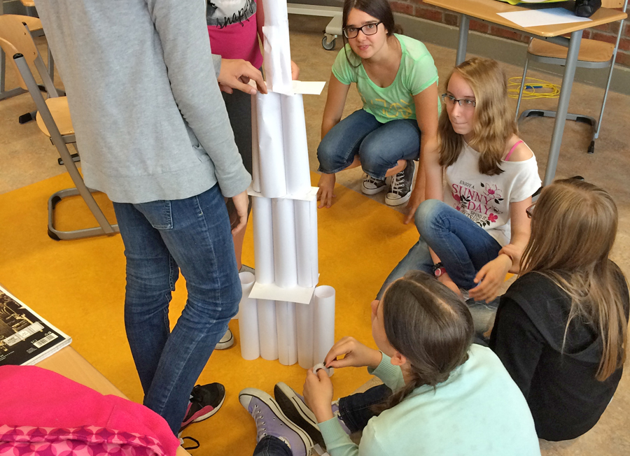 Textsicher und voller Spielfreude begeisterten die jungen Schauspieler das Publikum und wurden nach der Aufführung für ihre Leistung mit kräftigem Applaus belohnt. Auch für die beteiligten Lehrer gab es großes Lob. Allen voran Frau Johann, die nicht nur die Gesamtleitung übernahm, sondern auch in der Schlussszene auf der Bühne mitspielte. Kreativ unterstützt wurde das Team von Frau Dauzenroth und auch von Herrn Hoppe, der gemeinsam mit den Schülern das Bühnenbild arrangierte.