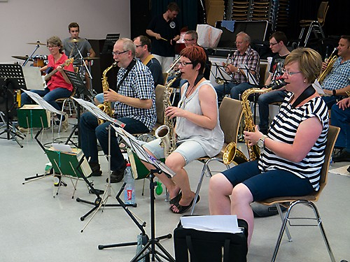 Mit dem Ziel, einen Einblick in z.B. Satzspiel, Artikulation, Stilistik und Improvisation zu erhalten und den Klang einer Big-Band einmal „live“ mitzuerleben, konnte die Probe beginnen.