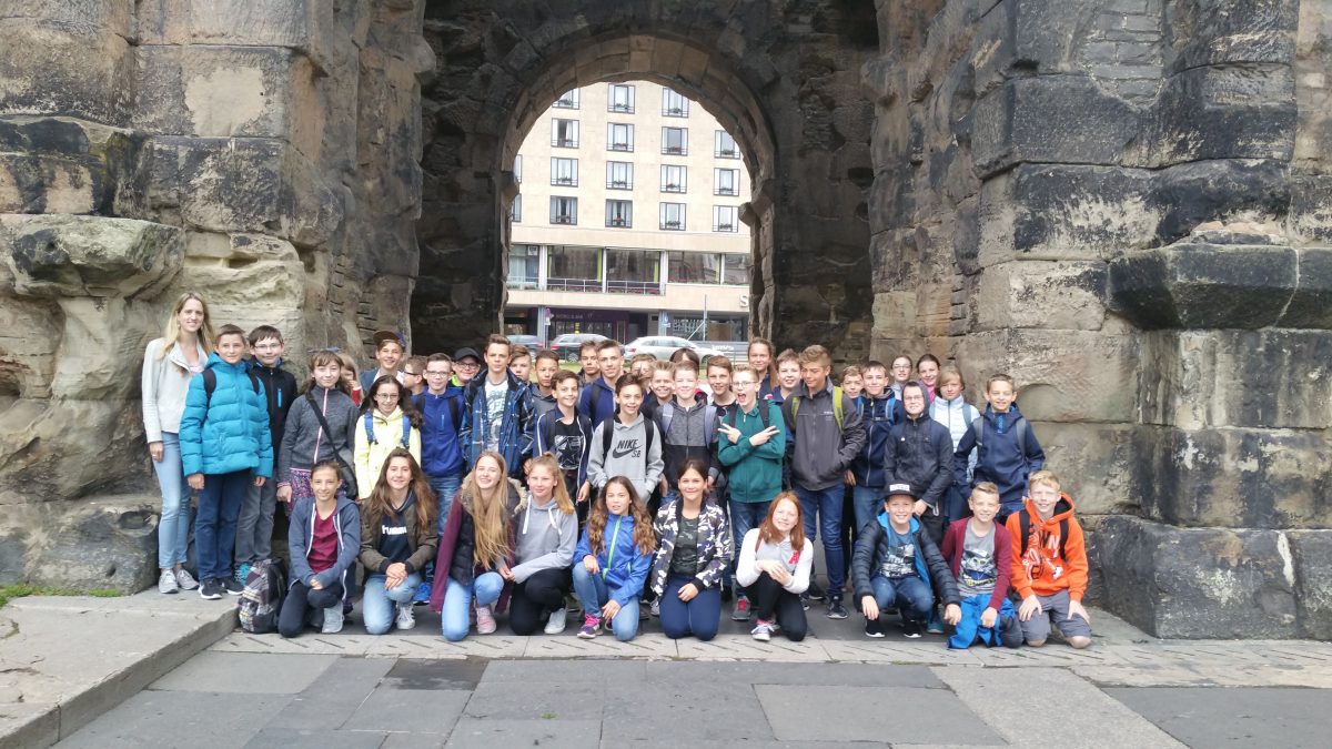 Am 07. Juni 2017 besuchten die Lateinkurse des 6. Jahrgangs die Porta Nigra in Trier. Dort angekommen, holte uns ein römischer Soldat ab, der uns den Aufbau der Porta Nigra erklärte und uns anschließend zu einem römischen Zenturio führte. Dieser machte uns zu seiner Armee. Der Zenturio erzählte uns auf lebhafte und lustige Weise einiges über die römischen Götter, vor allem über den Kriegsgott Mars. Am Ende führte er uns noch ein kleines Theaterstück vor. Nach der Führung durch die Porta Nigra hatten wir eine einstündige Mittagspause. Schließlich trafen wir uns wieder an der Porta Nigra und bekamen Aufgaben für eine Stadt-Rallye. Die Rallye führte uns zu den Wahrzeichen der Stadt, darunter auch der Trierer Dom. Schon traten wir die Heimreise an und nach fast zwei Stunden waren wir wieder zurück in Mülheim-Kärlich. Nun wurden noch die Sieger der Stadt-Rallye gekürt. Trotz einiger kurzer Regenschauer hatten wir einen schönen Tag und haben viel über das Leben der Römer gelernt.
