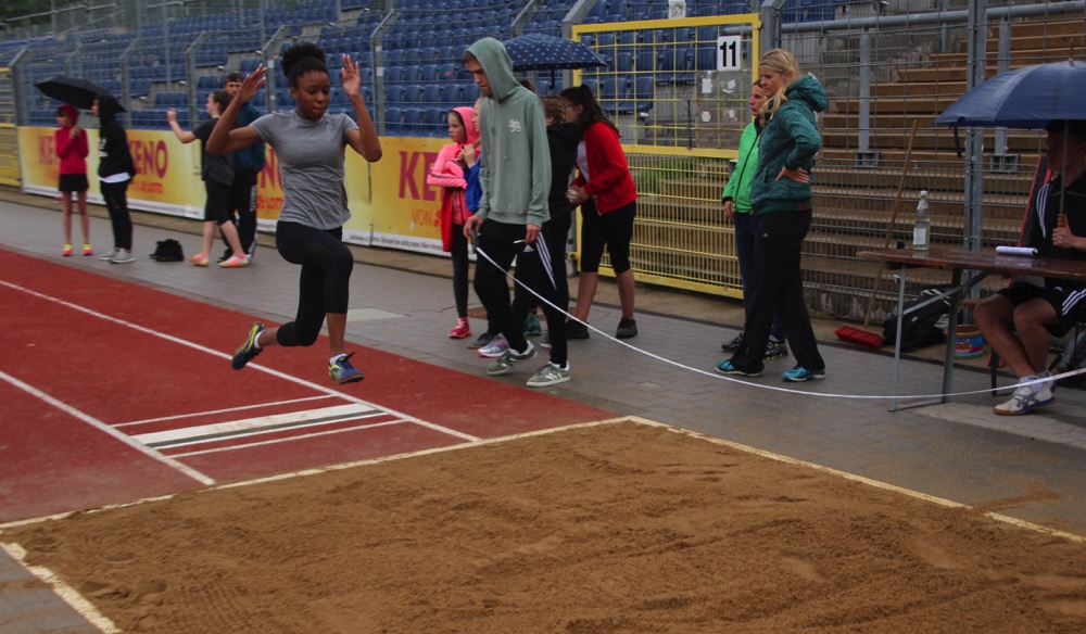 Die Mädchenmannschaft zeigte noch größere Erfolge. So sprintete Lucy Nwora-Emeke in 7,31 Sekunden ins Ziel, Laura Branß warf 39 Meter im Weitwurf und sprang 4,39 Meter im Weitsprung. Das Team erreichte 5021 Punkte und qualifizierte sich knapp für den Landesentscheid am 14. Juni 2018 in Bad Bergzabern.
