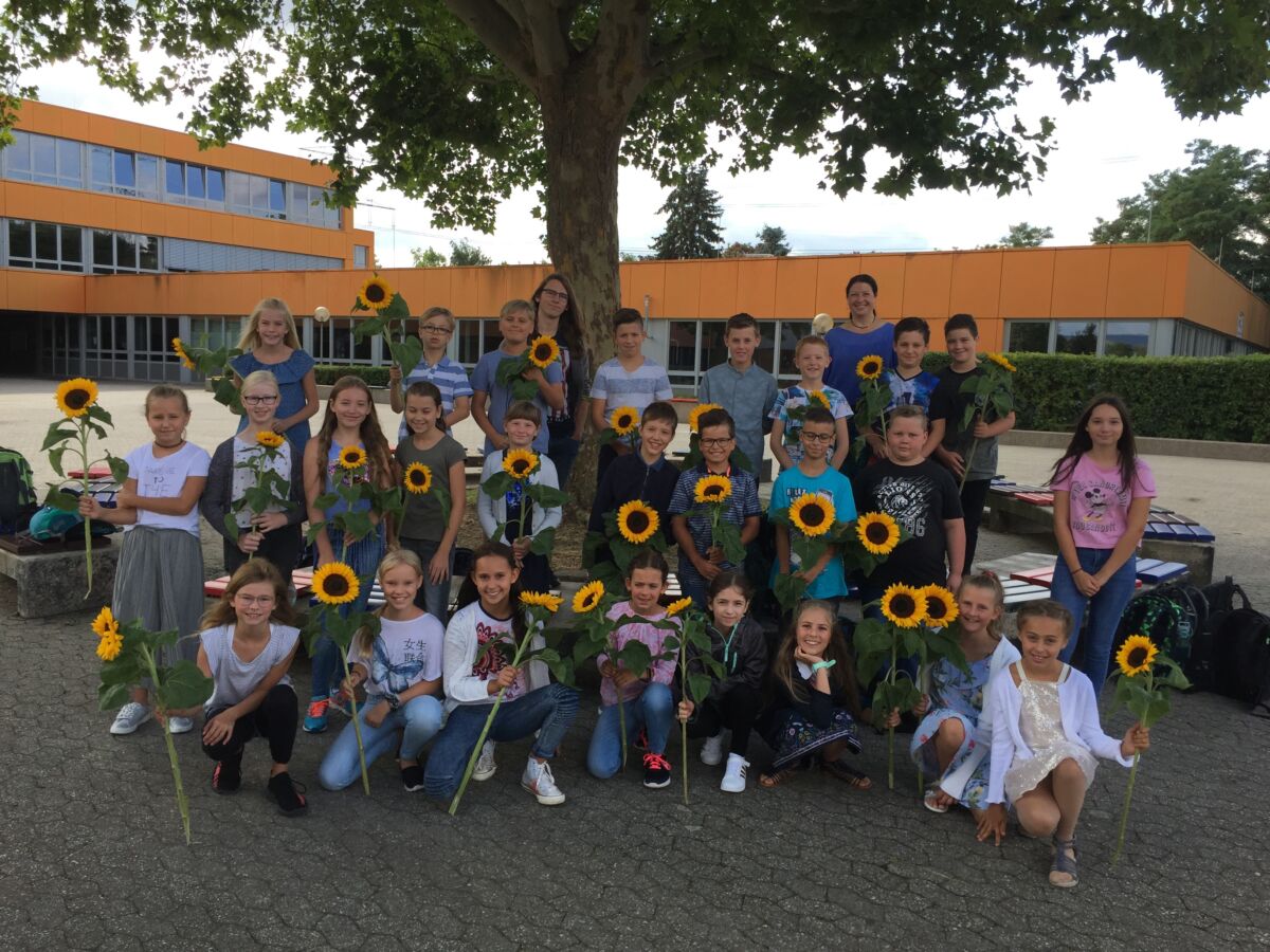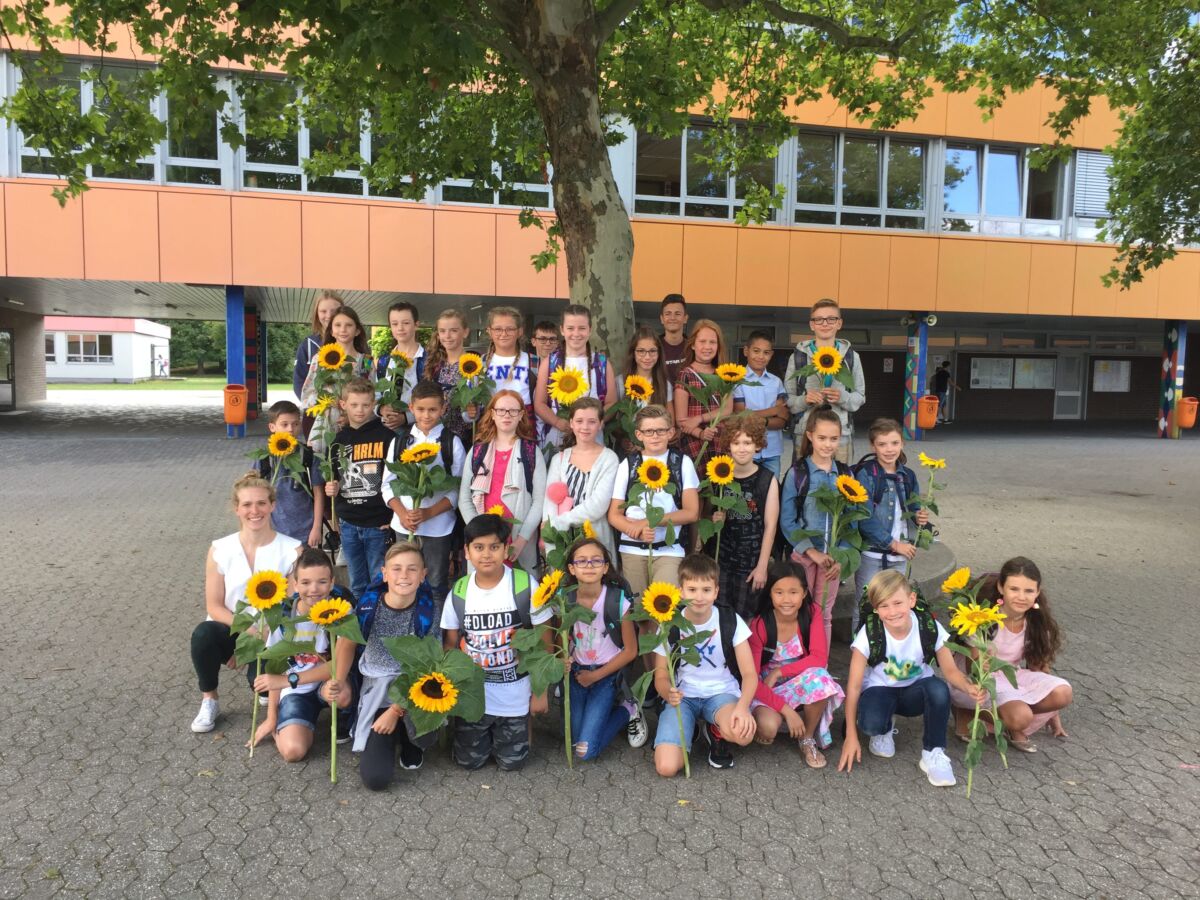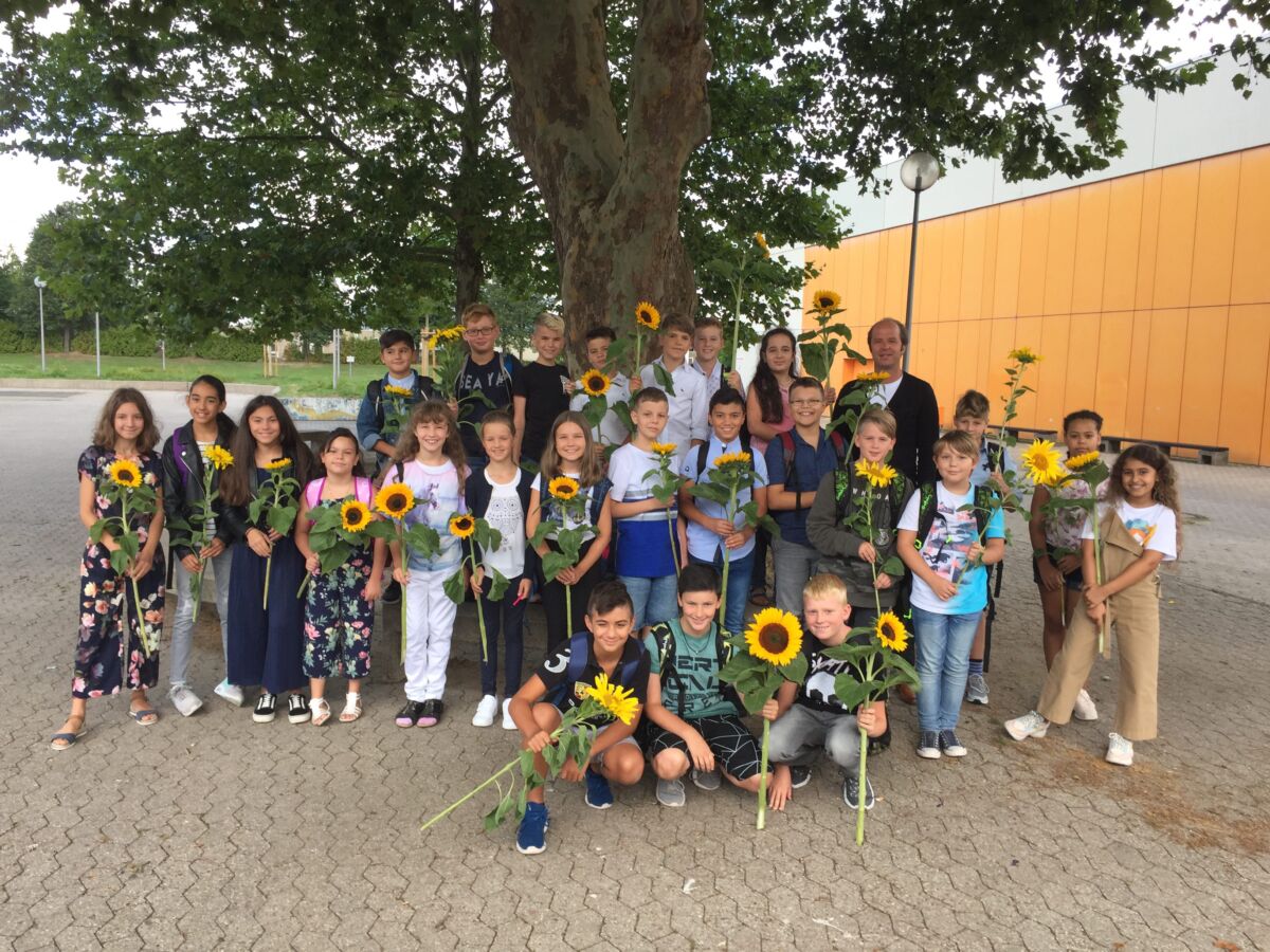Endlich war es soweit. Orientierungsstufenleiterin Frau Breiner stellte die neuen Klassenleiter und die Paten-Teams vor. In alter Tradition des Mittelrhein-Gymnasiums überreichten die Paten jedem Neuling eine Sonnenblume, die unser Förderverein dankenswerterweise spendete. Einige Sonnenblumen konnten in diesem Jahr erstmals aus dem eigenen Schulgarten geerntet werden. Frau Hermens-Meyberg (5d), Frau Beil (5c), Herr Krampe (5b) und Frau Breiner (5a) bezogen mit ihren Schülerinnen und Schülern die Klassenräume, während Schulelternsprecher Herr Grönwoldt sowie der Vorsitzende des Fördervereins, Herr Marschall, ihre Grüße an die Familien richteten, die die feierliche Stunde anschließend bei Kaffee und Kuchen ausklingen lassen konnten.