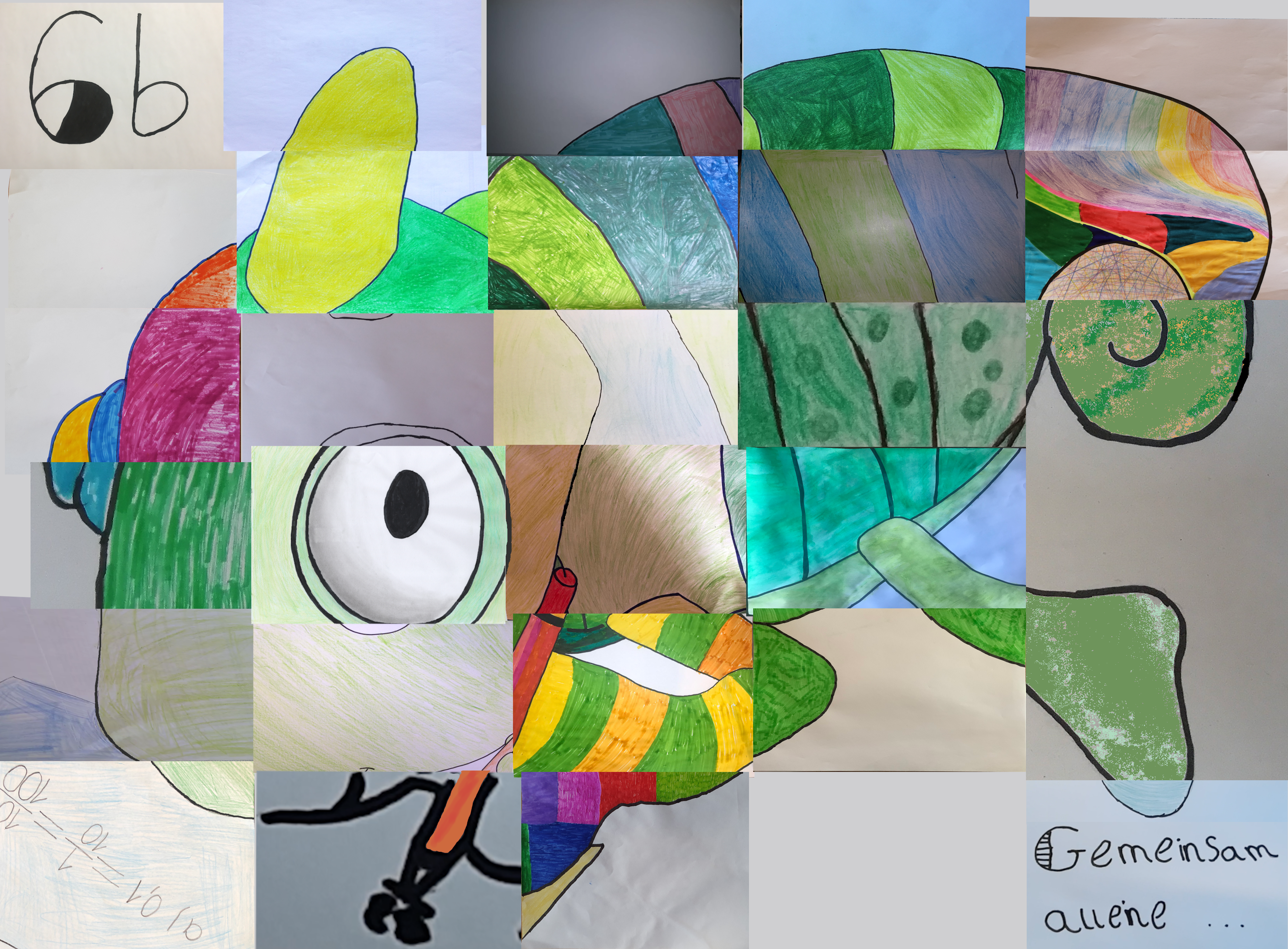 Klassenmaskottchen "Chamilla", Klassenbild der 6b als gemeinsames Projekt während des Zuhauselernens
