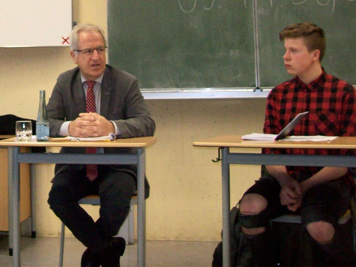 Freitag, der 10.11. 2017. An diesem Tag einmal für die Klasse 9b kein Deutschunterricht in der ersten Stunde, sondern stattdessen großes Tischerücken. Ein Podium wurde aufgebaut. In diesem ungewohnten Rahmen begrüßte die Klasse den Landtagsabgeordneten unseres Wahlkreises, Herrn Josef Dötsch. [...]
